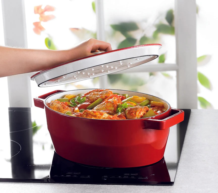 La fonte est un matériau ancien, solide, et surtout très efficace pour la cuisson lente. Elle chauffe doucement, garde la chaleur longtemps et la répartit de manière uniforme. Résultat : les plats mijotent sans brûler, les viandes deviennent tendres, les saveurs se développent pleinement. C’est exactement ce qu’on recherche quand on prépare un bœuf bourguignon ou un pot-au-feu.