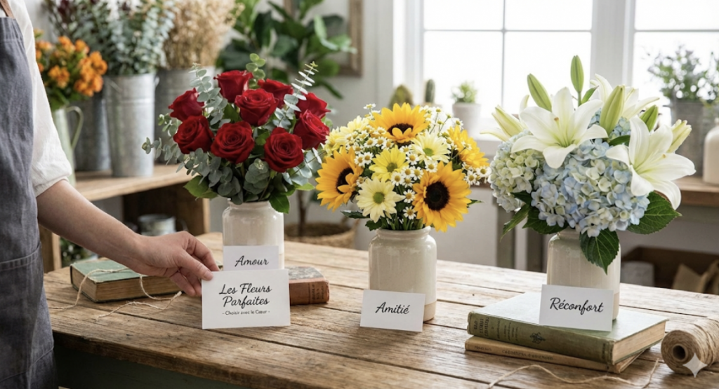 Choisir les fleurs les plus appropriées commence par clarifier votre intention. Exprimez-vous l’amour, offrez-vous du réconfort ou célébrez-vous une réussite ? Les nuances et les textures contribuent à transmettre ces messages : les tons chauds et riches évoquent la passion, les tons pastel la pureté ou la tendresse. La disponibilité saisonnière influence également le choix : tulipes au printemps, dahlias en été ou amaryllis en hiver. Les fleuristes artisans composent leurs bouquets en fonction de la fraîcheur et de l’équilibre, veillant à ce que chaque tige contribue harmonieusement à l’ensemble. Les roses demeurent un choix universel, synonyme d’élégance et de symbolisme ; pour découvrir les différentes variétés, consultez ce guide.page dédiée.En harmonisant la signification symbolique et vos goûts personnels, vous créez une composition florale qui suscite une émotion profonde. Qu’il s’agisse d’exprimer l’amour, la reconnaissance ou le soutien, le choix judicieux des fleurs transmet profondeur et authenticité.