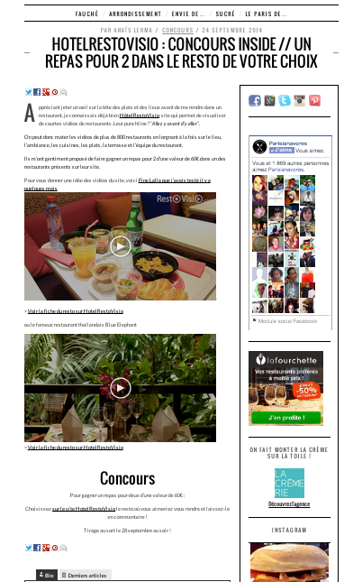 Hotelrestovisio : concours inside // un repas pour 2 dans le resto de votre choix