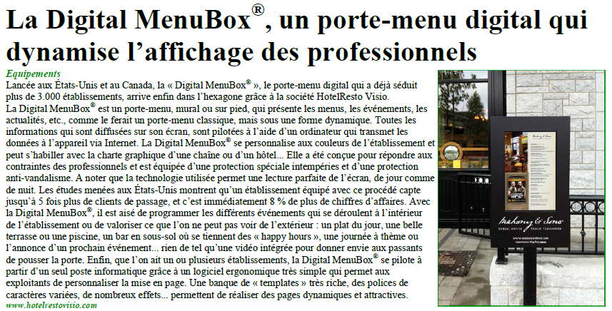 La Digital MenuBox®, un porte-menu digital qui dynamise l’affichage des professionnels
